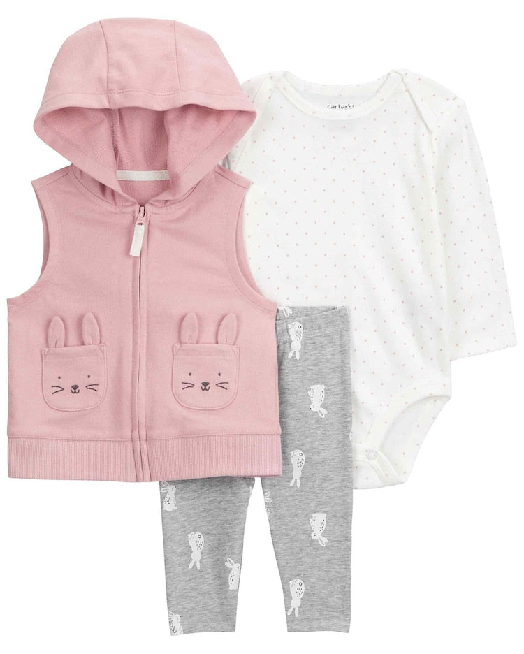 Super fofinho e delicado, o Conjunto longo bebê 3 peças capuz com coelho interativo multicor | Carter's é perfeito para deixar a sua neném ainda mais lindinha. Feito de algodão, o conjunto pode ser usado com outras peças, tornando as possibilidades de lookinhos infinitas. Conta com 1 body, 1 colete e 1 calça, super lindinhos. Conjunto perfeito para deixar a sua baby super confortável para descobrir o mundinho. Aproveite e invista!
