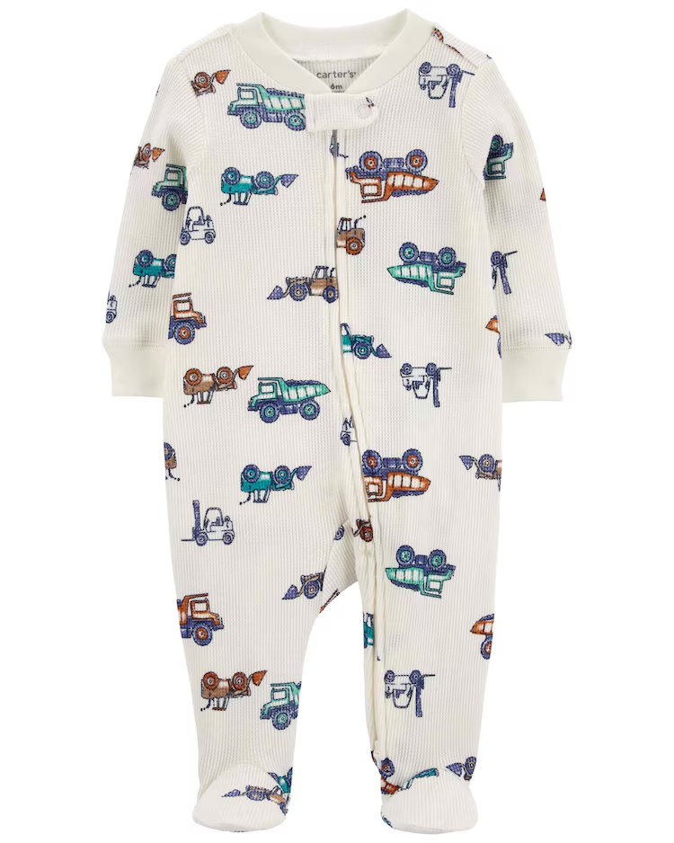 Alie conforto e fofura ao seu baby com o Macacão bebê texturizado caminhões brancos | Carter's. Feito de algodão e poliéster, o macacão conta com fechamento por zíper inverso com martingale para proteger os dedinhos de seu bebê, manga em ribana e seu charminho fica por conta da estampa de caminhões e tratores. Uma graça!