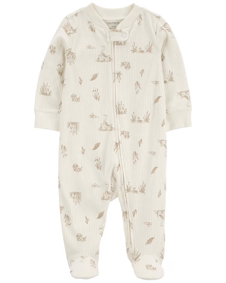 Super fofinho e confortável, o Macacão bebê com pezinho canelado ganso cogumelo bege | Carter's será a pedida certa para o seu neném. Feito de algodão com poliéster, o macacão conta com fechamento por zíper inverso, possui martingale para garantir proteção e seu grande destaque está em sua estampa de ganso com cogumelos. Seja descansando ou se divertindo com os papais, a peça é certeira para esses momentos tão lindos e únicos!