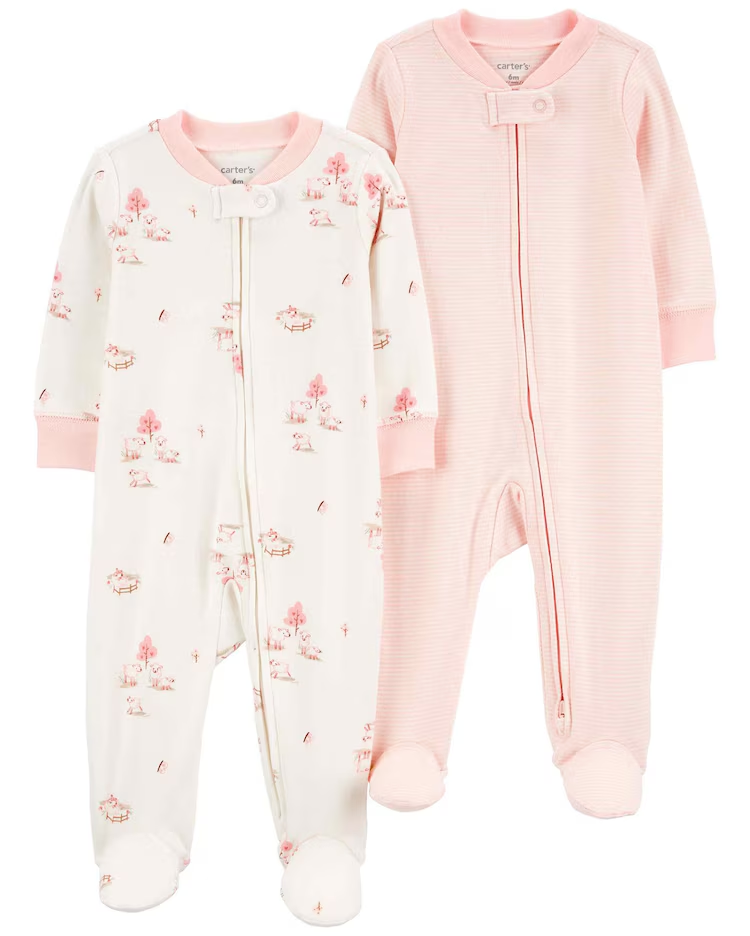 O Kit macacão bebê 2 peças listrada ovelhas multicor | Carter's é confeccionado em algodão macio e aconchegante, com zíper frontal que permite a abertura inversa facilitando na hora da troca de fraldas, manga longa com punho, pezinho fechado e martingale com botão de pressão que protege o bebê do zíper. É ideal para todos os momentos. O modelo esbanja fofura e delicadeza, invista, seu bebê merece.